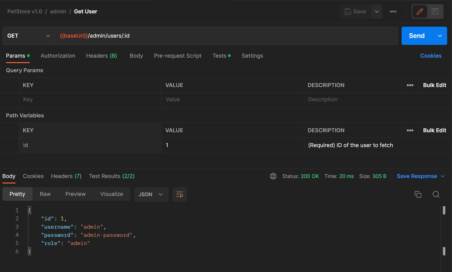 In this test, we are testing to make sure that the API responded with a successful response code (200) and that the body of the API response contained what we expect: a user with the ID that we requested.
