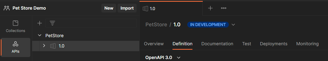 Now that we’ve created our API in Postman, we can start to write our schema using the Definition tab of the API page