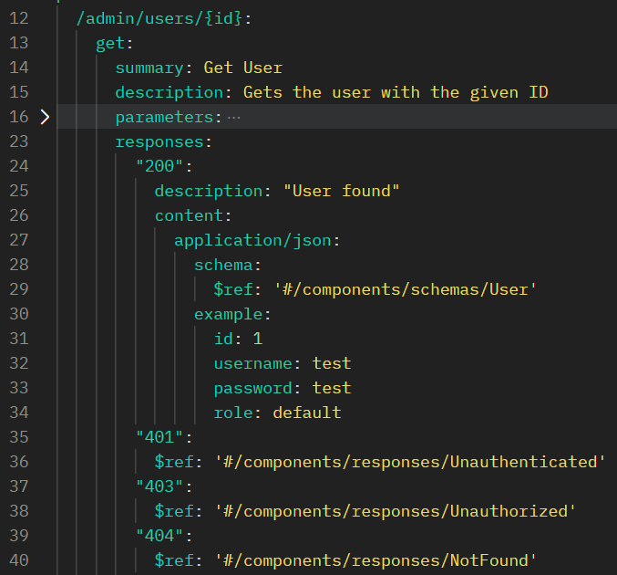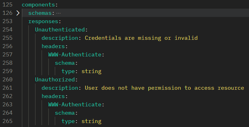 We should also define the authentication-related responses on each path so that API consumers know what to expect when something goes wrong